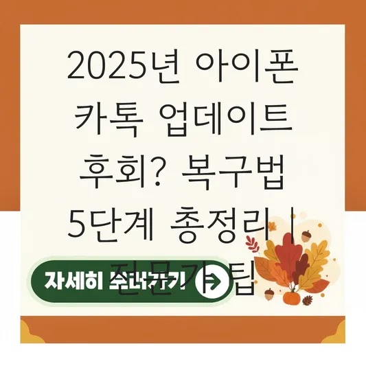 최근 카카오톡 업데이트 후 홈 화면 피드 노출이나 오픈채팅 숏폼 자동 재생 때문에 불편함을 겪고 계시죠? 기업의 프로세스 최적화를 컨설팅하는 전문가로서, 저는 이런 비효율적인 변화가 생활에도 적용될 때 불편함을 느낍니다. "혹시 업데이트 전으로 되돌릴 수 없을까?"라는 고민은 당연합니다. 하지만 아이폰(iOS) 사용자는 안드로이드와 달리 업데이트 복구가 쉽지 않습니다. 이 글에서는 2025년 최신 기준으로 아이폰 카카오톡 업데이트 후 데이터를 안전하게 복구하고, 앞으로의 손해를 방지하는 실질적인 팁을 단계별로 안내해 드립니다.
