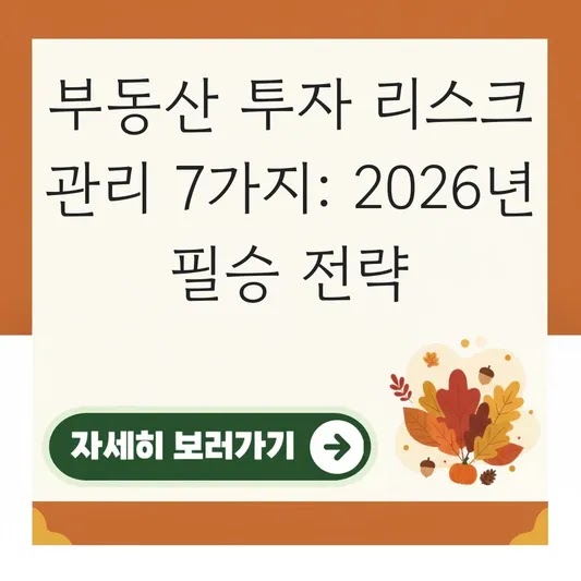 부동산 투자 리스크 관리 7가지: 2026년 필승 전략