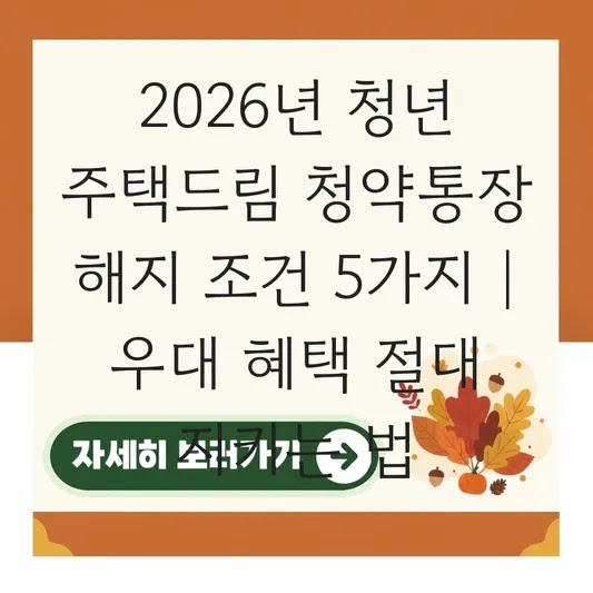 2026년 청년 주택드림 청약통장 해지 조건 5가지 | 우대 혜택 절대 지키는 법